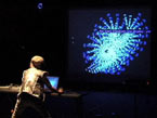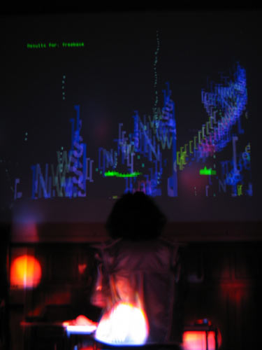 CyberSpaceLand since 2003. The visuals function more fully as visual music, new gestural interfaces have been added, and new search narratives are developed on an ongoing basis. And most importantly, Übergeek keeps practicing...